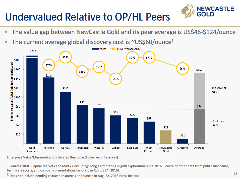 He’s referring to NewCastle’s value relative to its peer group on an enterprise value to M&I gold ounces basis: